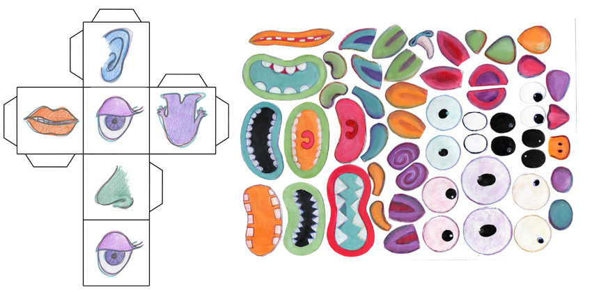 Para jugar a Construye un monstruo, primero debemos imprimir las ilustraciones de los ojos, orejas, bocas y narices en un papel grueso y recortar con cuidado todas las partes por separado. Una vez que tenemos listas las piezas, el juego está preparado.