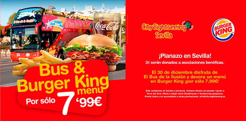 ¿Buscando un plan diferente para disfrutar durante las vacaciones de Navidad en familia? City Sightseeing y Burguer King nos ofrecen una propuesta a la que es difícil resistirse. Y es que el próximo miércoles 30 de diciembre todos los residentes en Sevilla capital y provincia podrán disfrutar de un tour panorámico y de un menú de Burguer King por solo 7,99 euros.