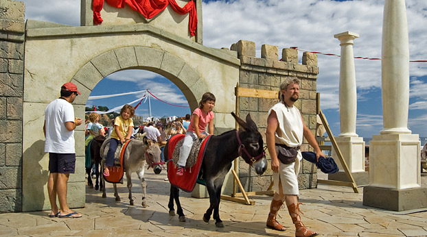 • 13:30 h- PANEM ET CIRCENSES.  Números de riesgo propios del Circo Romano. Magia y malabares completarán un espectáculo diurno para todos los públicos. Chivo